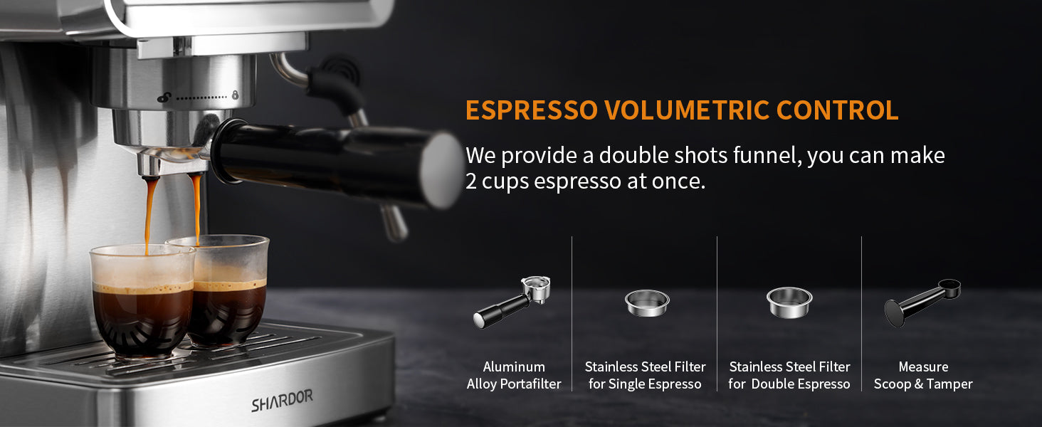 - Double Espresso Shots: We provide single and double shot stainless steel filter to choose your espresso shot size. Single Shot-Brew about 30ml/7 grams amount of ground coffee. Double Shots-Brew about 60ml/14 grams amount of ground coffee