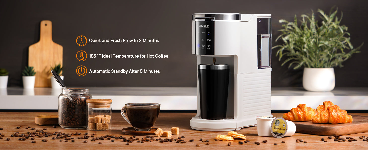 KIDISLE® 3 in 1 Single Serve Coffee Maker for K Cup Pods White