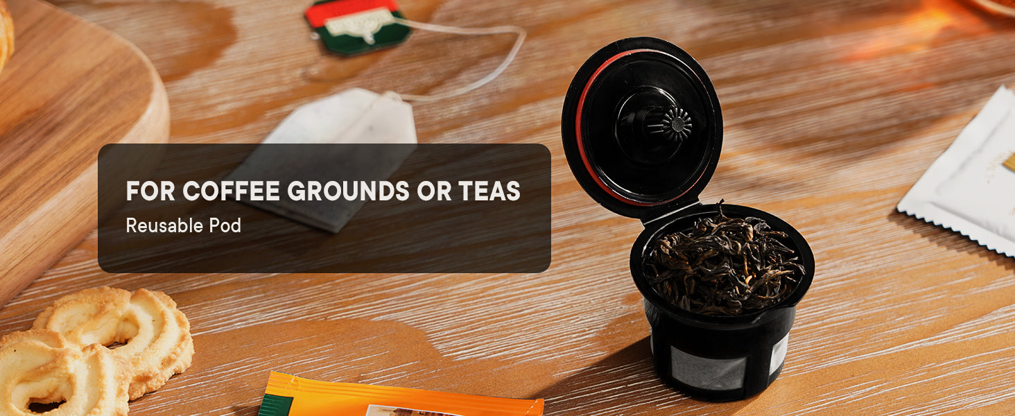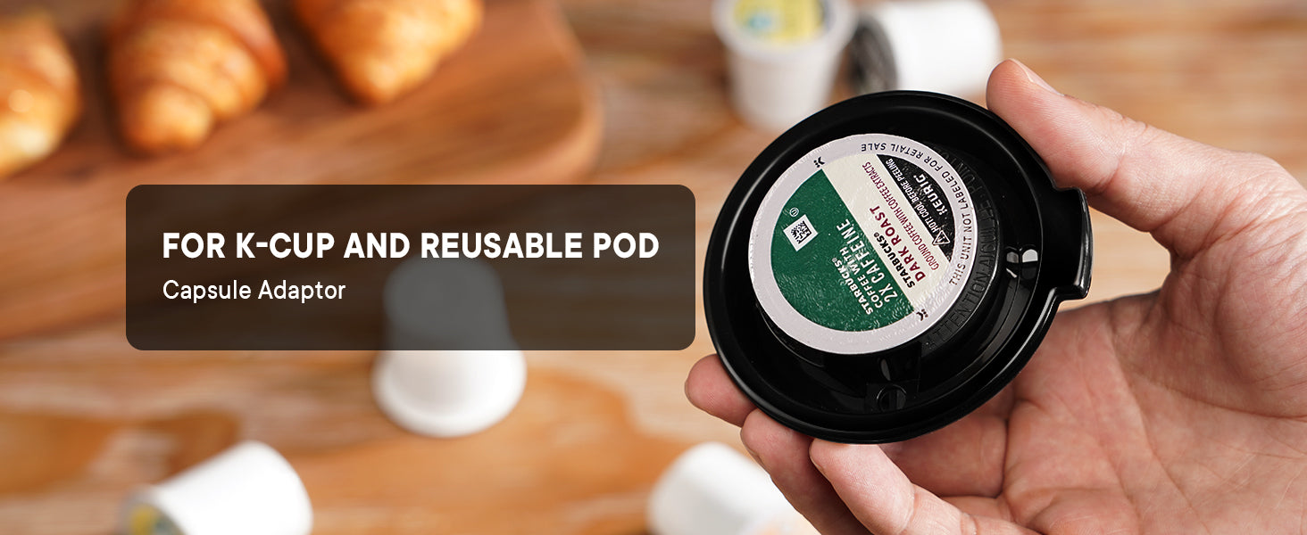 【3 IN 1 BREWING FUNCTION】This pod coffee maker is equipped with 2 adaptors and reusable capsule, which is compatible with any K cup of normal brand, and also supports brewing your favorite ground coffee or tea.