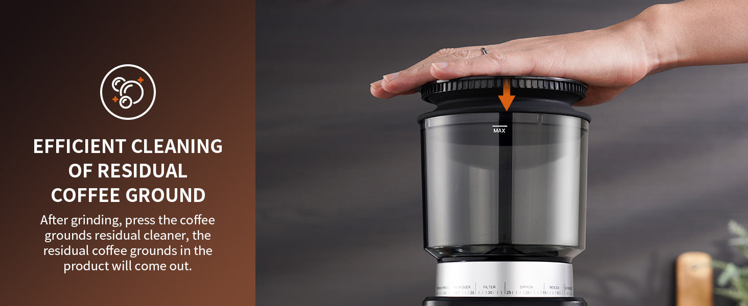 - Easy to Clean: The anti-static technology makes the ground coffee chamber mess-free. The coffee grounds residual cleaner is good for cleaning the residual coffee grounds.