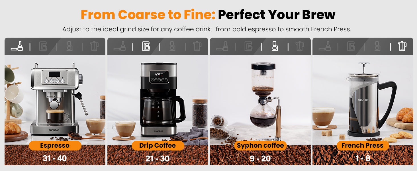 - Precise Control for Any Brew: With 40 precise grind settings, you can find the perfect grind size for any brewing method—from coarse for French Press to fine for Espresso and espresso drinks.