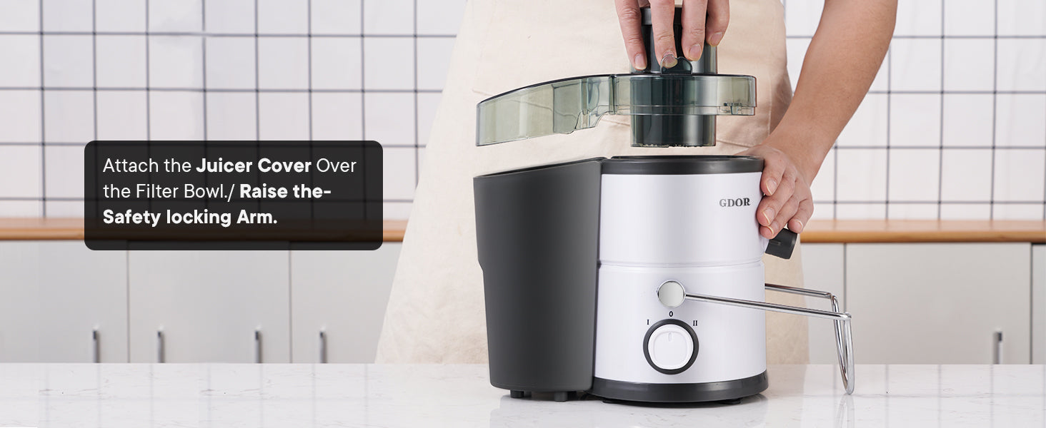 - [Safety Features] – The safety locking arm ensures the juicer operates only when the lid is securely locked in place. Overload and overheat protection automatically shut down the juicer to enhance safety and extend its lifespan. Non-slip feet on the bottom help stabilize the machine and reduce vibration