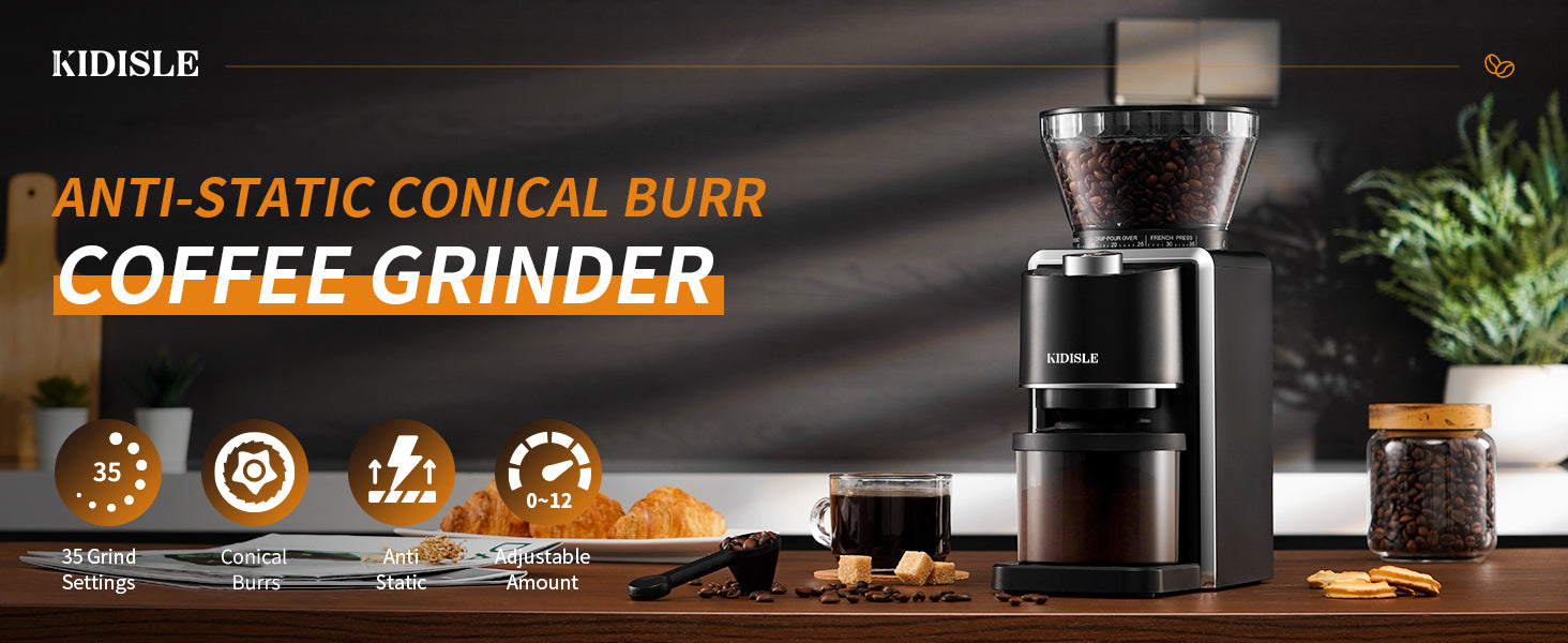 KIDISLE Coffee Burr Grinder with 35 Precision Grind Settings