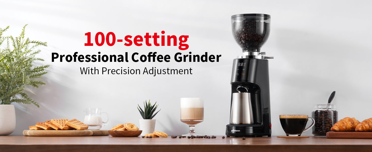 SHARDOR® Professional 64mm Flat Burr Grinder with 100 Grind Settings