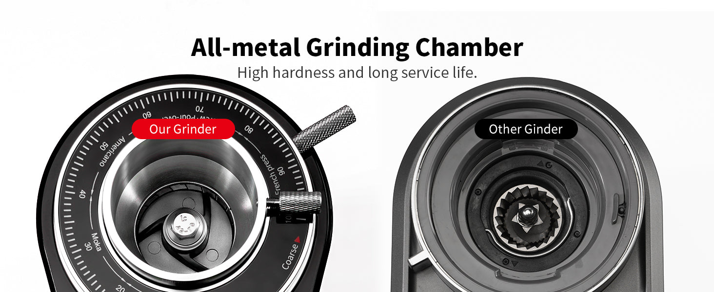 - All-metal Grinding Chamber: Superior hardness and exceptional longevity