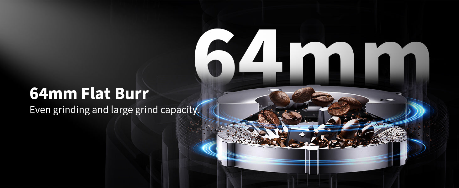 - 64mm Flat Burr: Achieves uniform grinding with minimal heat generation, enhancing the flavor profile for a superior taste experience