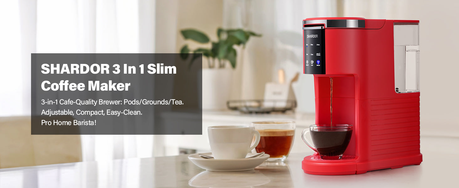SHARDOR® 3 in 1 Single Serve Coffee Maker for K Cup Pods Red