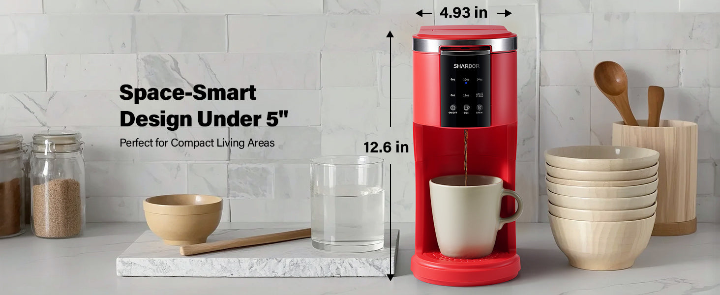 - 【Compact & Counter-Friendly】With a slim profile under 5.1 inches wide, this space-saving coffee maker fits perfectly in small kitchens, dorm rooms, or offices without taking up valuable counter space.