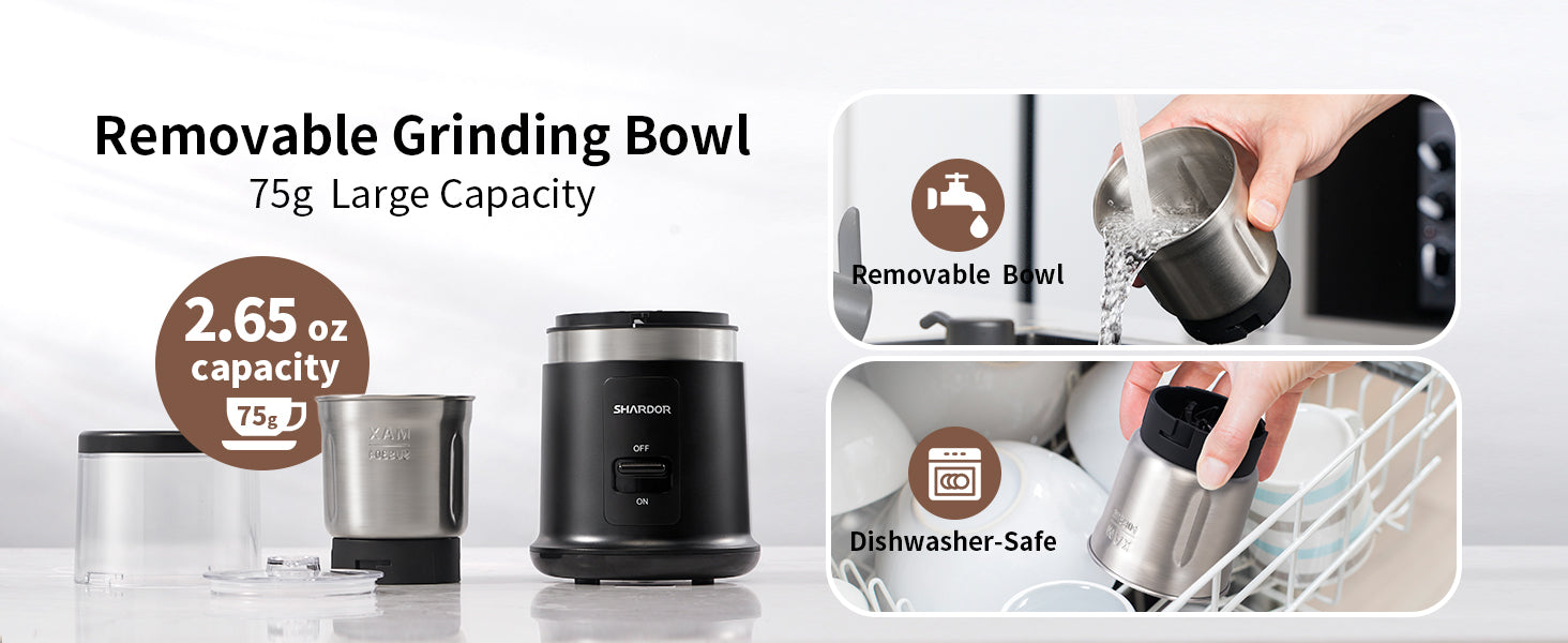 Multi-functional Coffee Grinder: With the upgraded stainless steel blades, this grinder makes easy work of grinding everything from coffee beans to spices and other dry ingredients, such as herbs, pepper, cinnamon, anise, flaxseed, nuts and coarse salt.