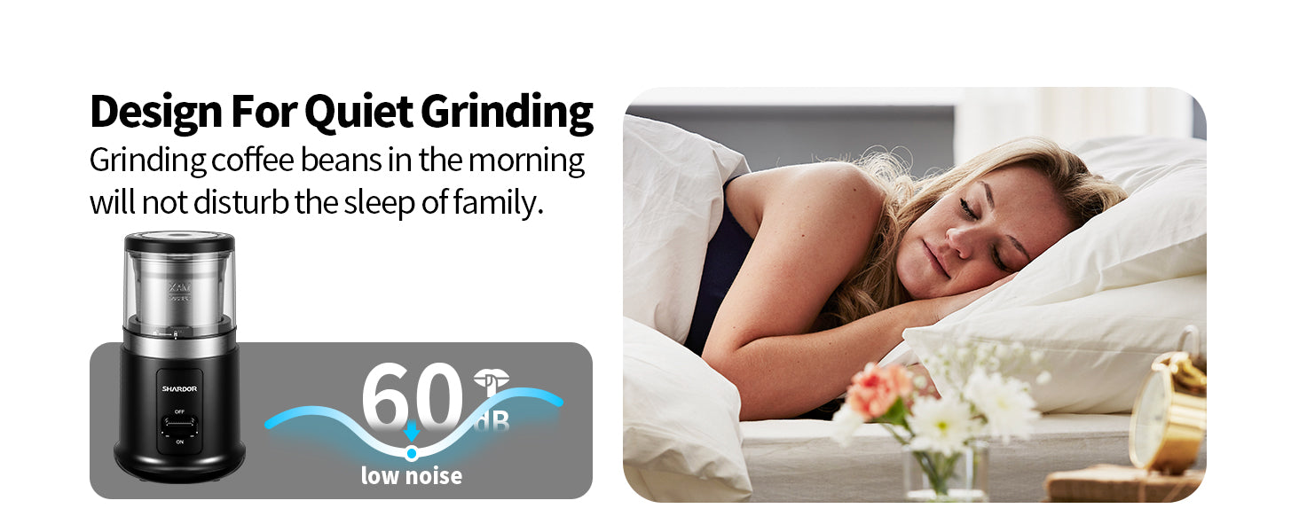 Super Silent:The average noise is 60 dB, which is quieter than other coffee grinders.