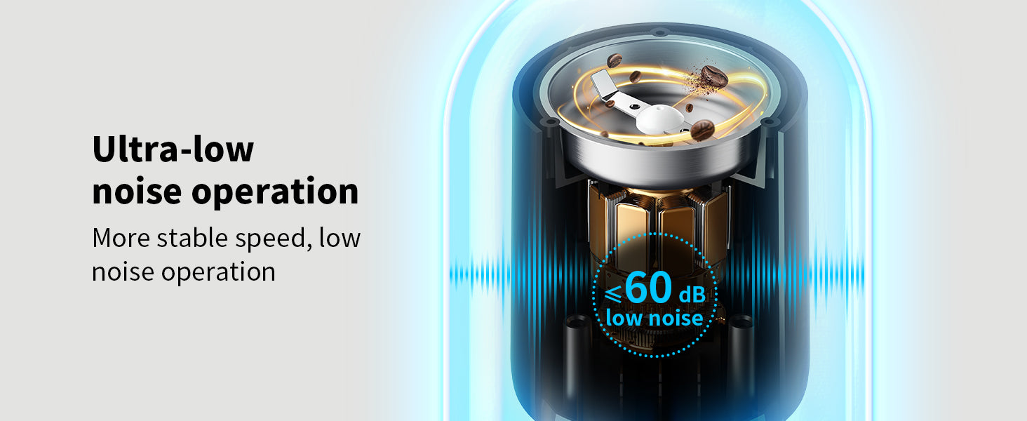 - 【Quiet Coffee Grinder】The average noise is 63 dB, which is quieter than other coffee grinders. Getting up early and grinding coffee beans without disturbing your families sleep in the morning.