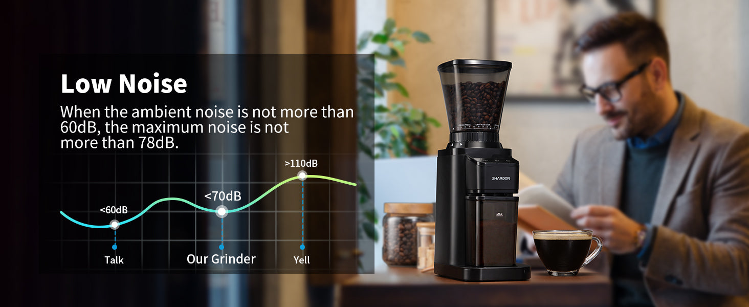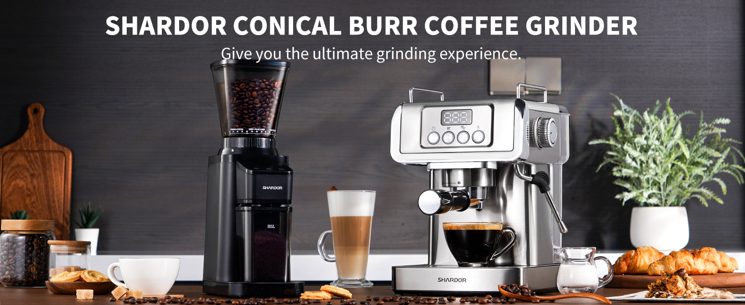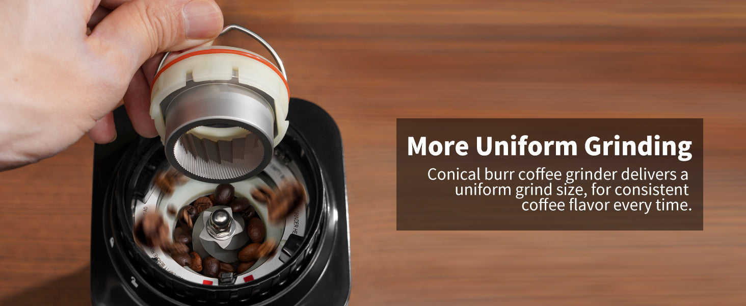Uniform Grinding: The SHARDOR coffee grinder is made of stainless steel conical burr, grinds uniform coffee grounds, generating less heat and preserving more coffee bean essential oils to extract the best flavor.