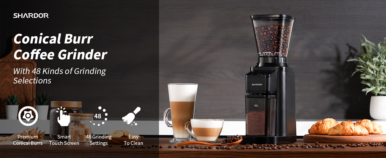 SHARDOR® Coffee Burr Grinder with 48 Grind Settings Black