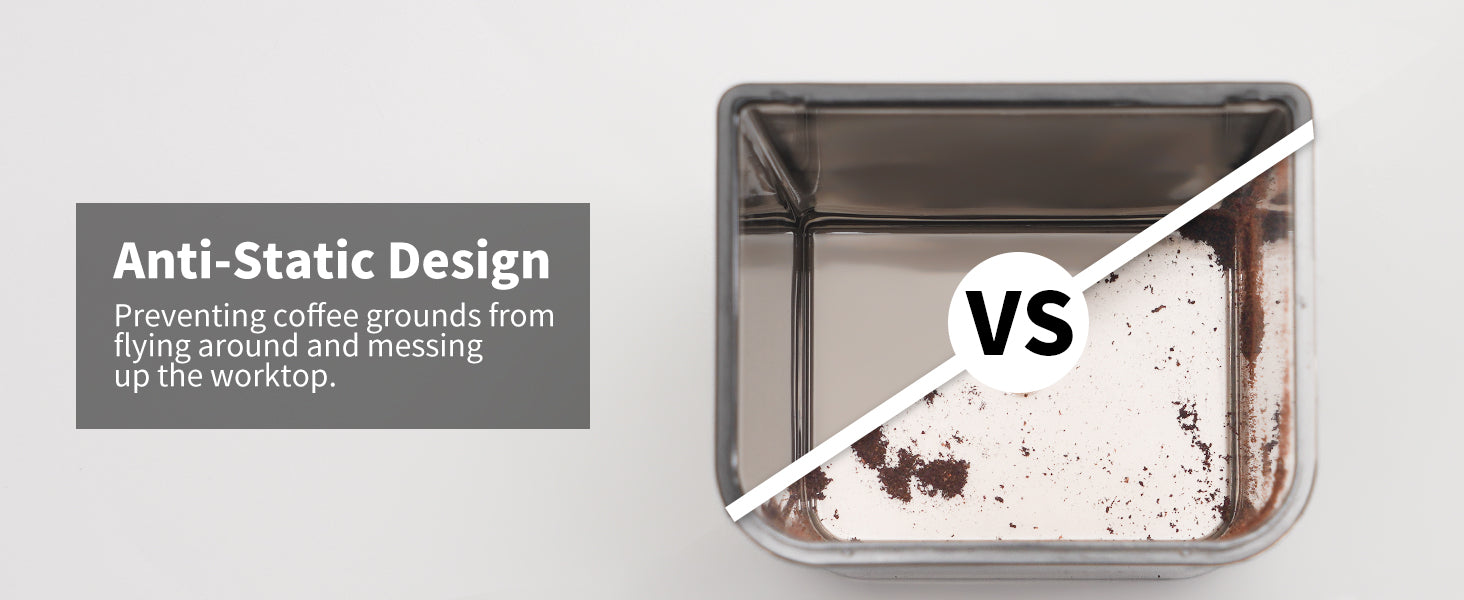 Upgraded Anti-static Technology: Prevents coffee grounds from flying around and staining the work surface.