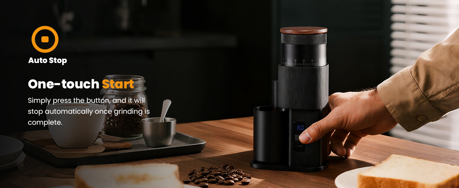 - One-touch operation, easy for beginners: Simply press the button to start grinding—no complicated settings required. Perfect for busy mornings or new coffee enthusiasts to use effortlessly.