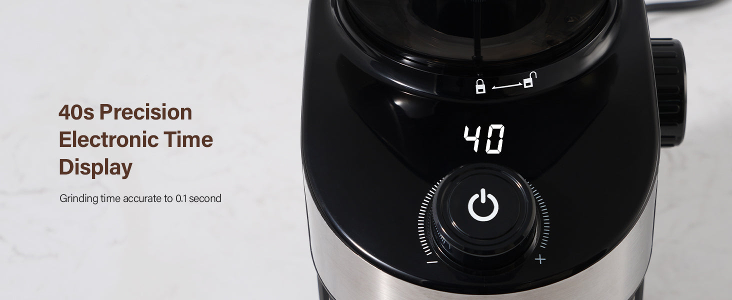 Precision Electronic Timer: Adjustable 40s digital timer allows precise and stable coffee grinding. Choose grinding time as needed and stop grinding with a single press.